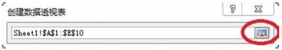 點擊圖示中的按鈕,選擇數據透視表要統計的數字區域,另外在下面創建數據透視表位置的地方,我們選新工作表,選的時候要注意,把最上面的標題行也選進去,選好之后,點擊圖示中按鈕回到之前的界面,弄好之后點擊確定。